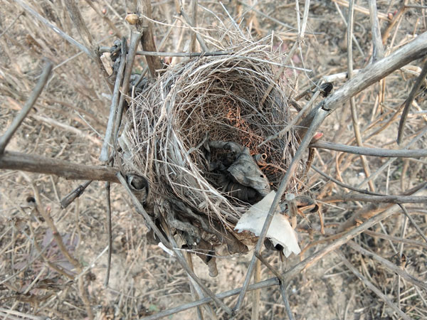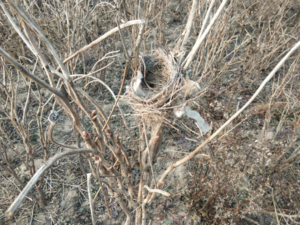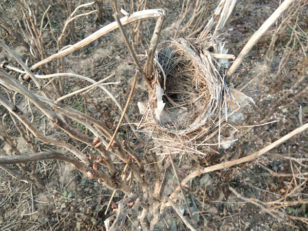 进入阳历的十二月份,牡丹地里已经没有什么农活要做了。闲来无事就溜达到牡丹地里转转,途经一块油牡丹地时,发现上有个精致的小鸟窝,虽然经历了无数个风吹雨打的日子,不过这小小的鸟窝依旧稳稳的搭在牡丹树叉间,不知究竟是怎样的一只小鸟会选择在牡丹树上安家呢?