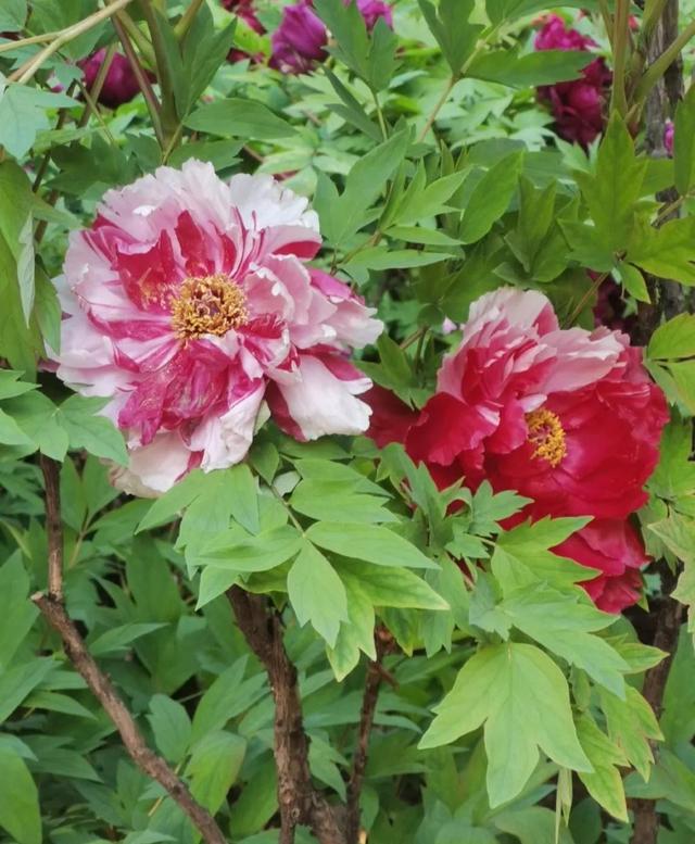 我第一次见到牡丹的时候特别失望,就觉着花这么庞大,但枝干这么细弱,有种头重脚轻,甚至有枝干承受不住花朵的担心。