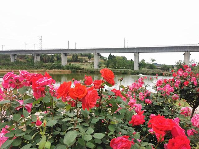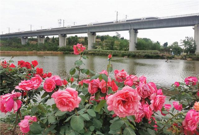 高铁在月季花海中穿梭。罗江区委宣传部供图