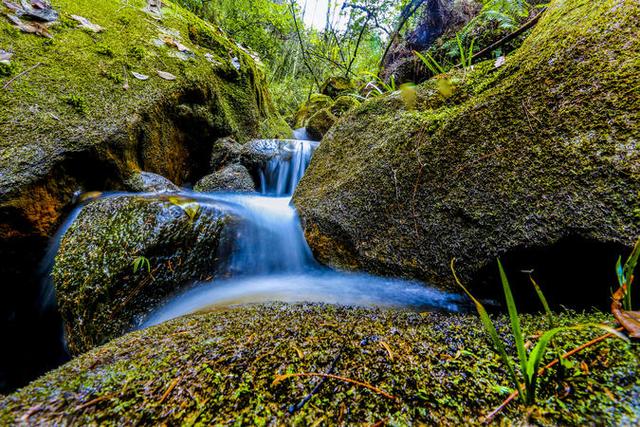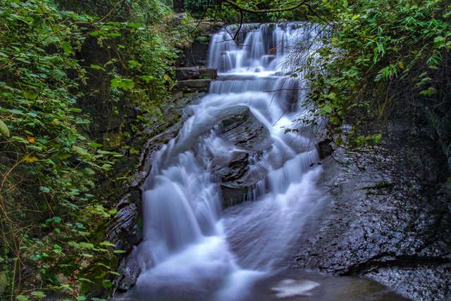 最美最让人迷恋的是花台瀑布,瀑布顶端错落有致的石壁就像一把石琴,水流就象琴弦,瀑布两边大大小小的树枝就象无数把弓,河床就象一个巨大的演奏台,风的吹动水的流动,让瀑布声发出大自然最原始最美妙的交响乐!