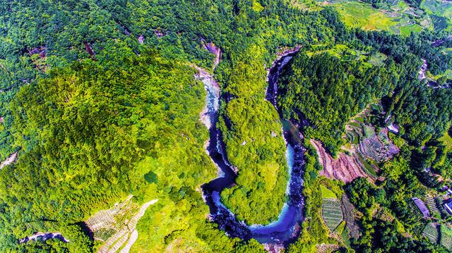 前江从福宝山开始,除了跌宕的瀑布就是峡谷底部曲曲弯弯的河流,一弯连着一弯,特别是几个大的u形河流十分大气神秘,因此,这段河流又被称作前江九曲十八弯!其中最壮观最大气的就是前江木霸河段的U形河流!