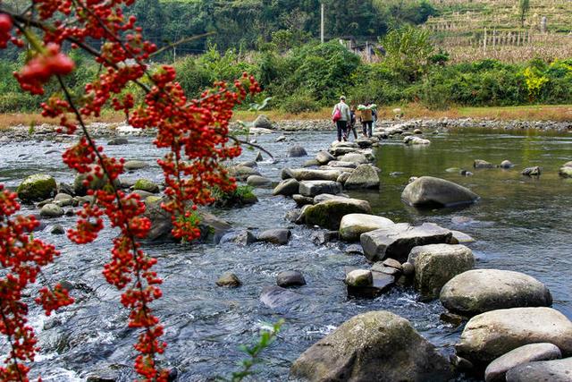 第一段像花园的河岸是从福宝山下的花台到老屋基,两岸除了古民居就是遍地的油菜,每到三月油菜花开的时候,蓝色的天空,绿色的山林,黄色的菜花,翠蓝的河水,沿着前江河形成了鲜艳的色带,仿佛大自然描绘的油画,蜂飞蝶舞,色彩斑斓!