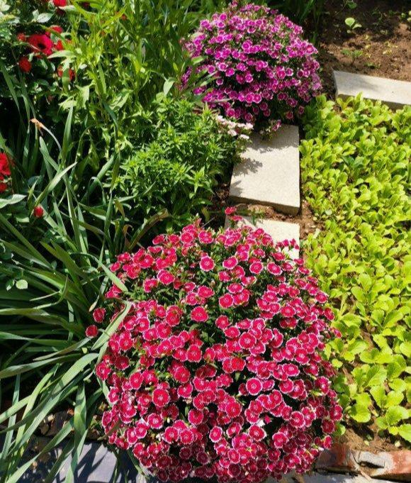 石竹花也是不怕冷,不怕热的花卉植物,在花园中可以作为护盆草以及覆盖地面的花卉植物。因为石竹花的植株非常矮小,但是开起花来却非常的漂亮。而且花开量很大,冬天零下十几度二十几度它也冻不死,年年都会发芽。石竹种子特别便宜,几块钱就能买到几千粒种子,随便一撒就是一片花海。