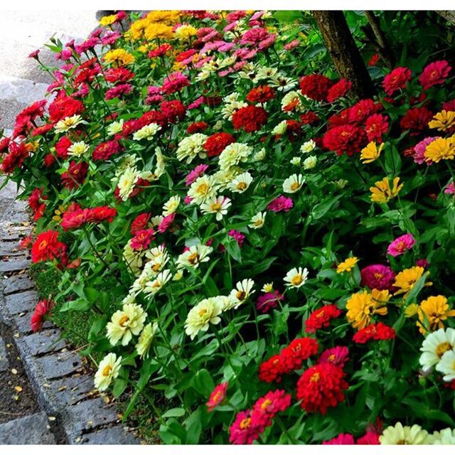 而且花开量特别多,花期特别长有三四个月的时间,所以叫做百日草。如果在网上买到一些各种颜色的百日草的种子撒在地上两个月就能开花,而且一直持续到深秋季节,就像一朵朵盛开的五颜六色的小菊花一般漂亮,栽种在花盆中也是非常漂亮的。它们简单好养不用去打理等着赏花就行了,比较适合种在庭院外以及小花园的花径上或者种在花盆里都可以。