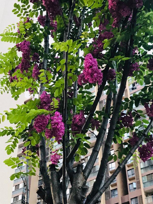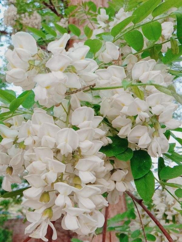 还有一种是开花的槐树,也叫做槐花树,结出来的花朵是可以食用的,槐花有清凉止血的作用,对于便秘的人来说非常管用,槐花还能食用,不知道花友们有没有吃过用槐花炸过的丸子,味道超级美味,吃过就停不下来的那种感觉,家门前种一棵槐树用处还是蛮多的。
