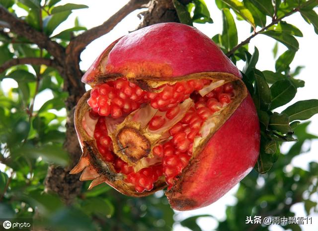 6.要防止果实开裂出现石榴果实开裂,这是平常在肥料的使用上过浓所致。虽然石榴开裂以后,如同笑口般的形态,欣赏起来也别具风味,但是会大大缩短观赏时间,因为盆栽石榴一旦开裂了以后,它里面的种子会自然散落到地面,引起整个果实过早的枯萎凋谢。所以,果子开裂这种现象,多是由于果实成熟以后,施肥过多或过浓引起,特别是施入了浓度较高的速效无机化肥,更容易引起果子开裂。