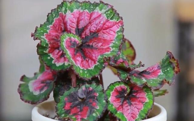 彩叶秋海棠是一种叶子比花还要漂亮的植物,虽然它也是可以开花的,但是花朵也是平淡无奇,丝毫没有叶子那么张扬漂亮。它的叶片五彩缤纷,颜色多变,渐变的颜色十分丰富,赤、橙、黄、绿、青、蓝、紫都能在它的叶子上寻找到,远远望去就像一幅勾勒的水彩画,非常的漂亮。