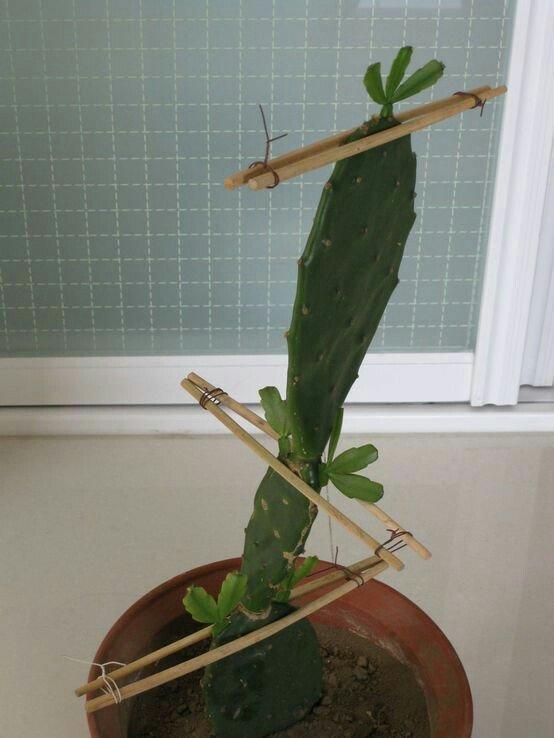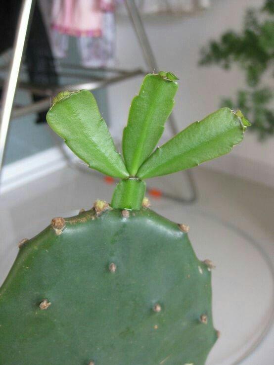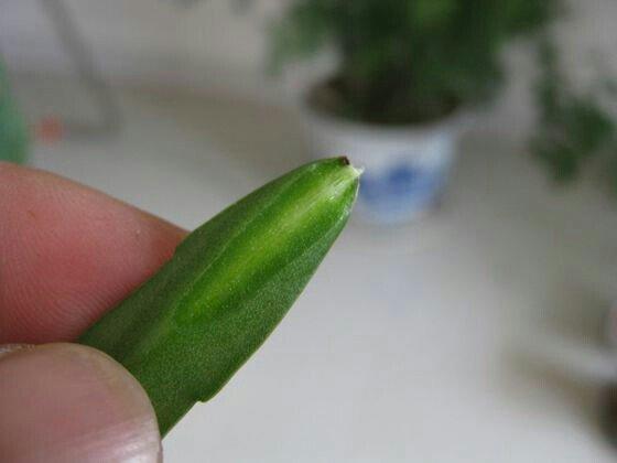 2. 蟹爪兰接穗的选择。要选择那些肉汁饱满、生长健壮的青壮期接穗作为嫁接的枝条,一般带两只分叉的接穗较好,成活率高些,而且成活以后株型比较丰满好看。