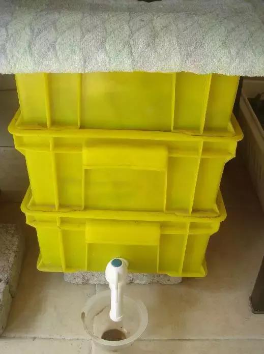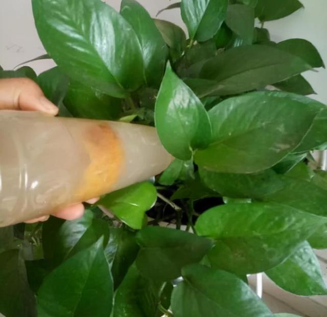 如果觉得异味比较大,装上几块橘子皮就可以了。大约发酵两三个月的时间,里面就会产生一些酸溜溜的气味,那就发酵好了。可以把里面的溶液倒出来,稀释之后浇花,把它剩下的残渣或者沤制好的黑褐色的土壤,用来养花,是营养非常充足的营养土。