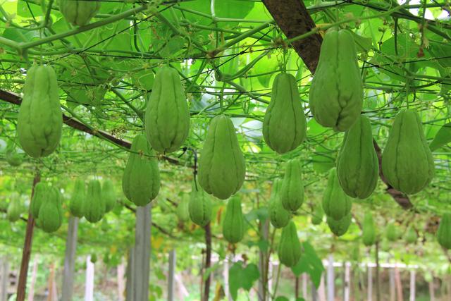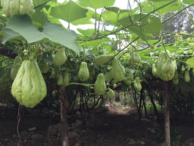 如果是种在院子里,你要搭一个大的架子,让它攀爬,到七八月份的时候,果子琳琅满目地挂满了藤蔓,又好看又好吃,自己摘下来可以凉拌佛手瓜,也可以用佛手瓜炒菜,如果不及时摘下来,佛手瓜在上面也会结种子的,是不是非常奇怪呢?