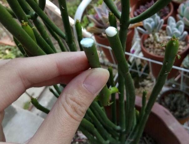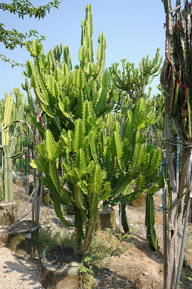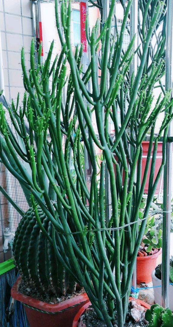 龙骨是大戟科的植物,它能长到两三米高,甚至能顶到屋顶,郁郁葱葱的特别漂亮。龙骨是特别耐旱的,哪怕一个月不浇水,它也干不死,只不过是茎有些软了,它的叶子有些落掉,但是浇水之后很快就会缓过来,它也是喜欢光照好的环境,但是在半阴的时候也会养得非常好,它是比较怕冻的,冬天要拿到室内去保温,其它季节都可以多晒晒太阳,龙骨长得郁郁葱葱,高大笔挺,耐旱性强,也是非常好养的懒人植物。