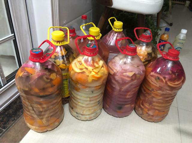 我们在发酵淘米水之类的时候,在塑料瓶里也要塞几块橘子皮进去,最好能塞满表面的一层,这橘子皮不要求是新鲜的还是晒干的,它们都可以有效地减少臭味。