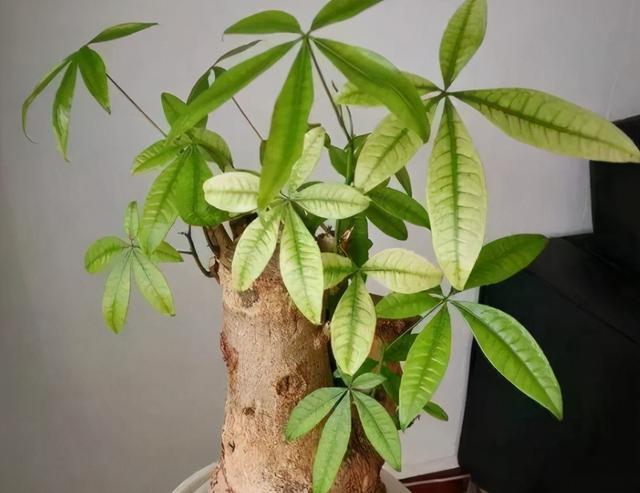 6因为发财树平时吸收水分和养分是比较有限的,根系比较弱,所以平时要每隔一两个月浇一次硫酸亚铁来预防它出现黄叶,如果没有硫酸亚铁,可以用醋来代替,也可以按照1 : 1000的比例来使用就可以了。可以喷洒叶面,也可以用来浇灌盆土,这样才能保证发财树绿油油的,一直健康生长。