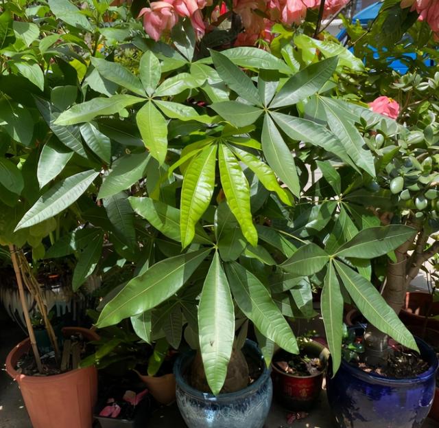 发财树也是很常见的盆栽绿植,它的寓意特别好,是寓意着财运亨通,生意兴隆,财源广进的风水植物,所以很多人都喜欢在家里摆盆发财树,发财树是典型的南方植物,它的原名叫瓜栗,在南方地区可以见到成片的生长,还能开花挂果呢,但是盆栽的发财树大多都是后期扦插而成的,株型比较好看,叶片繁茂,它也是典型的稀酸性的植物。