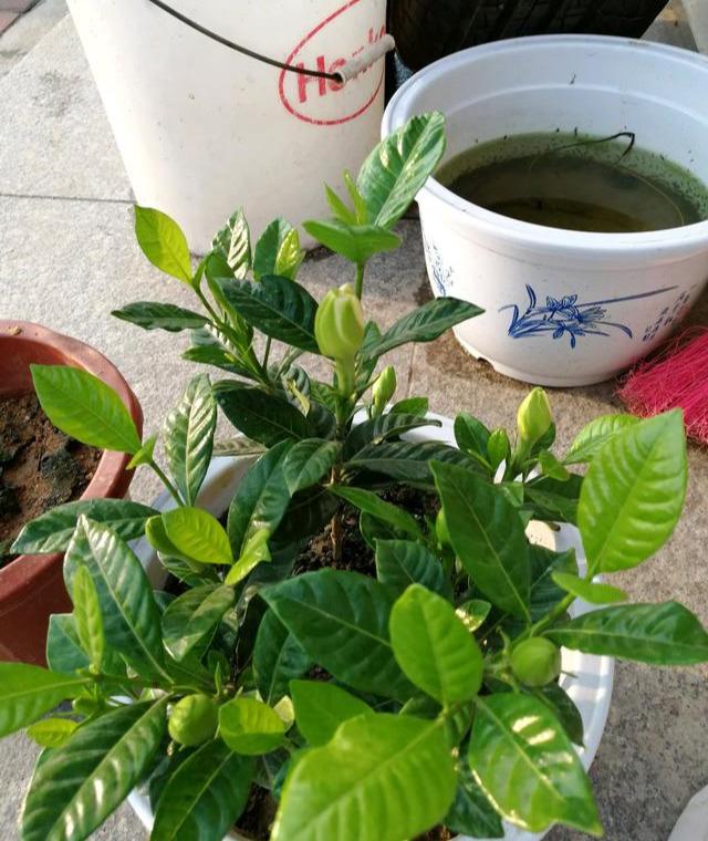 如果家里没有,也可以用醋来代替,按照1 : 1000的比例,每个月浇上一两次,让叶片一直保持绿油油的状态。不然栀子花很容易出现叶脉发绿,叶片发黄的状态,这就是严重的缺铁性的黄叶,到时候再调整就比较难了。