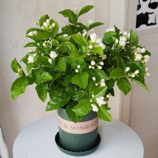 茉莉花养护起来比较简单,大水大肥大太阳养起来就容易得多。摘下花苞来泡茶可以提神利湿,具有辛甘凉,清热解毒的功能。所以经常喝一喝茉莉花茶,有着清热解毒的效果,不仅可以治疗感冒,腹痛等等。还可以对人的身体有着潜移默化的影响,在家里养盆茉莉花是非常不错的选择。