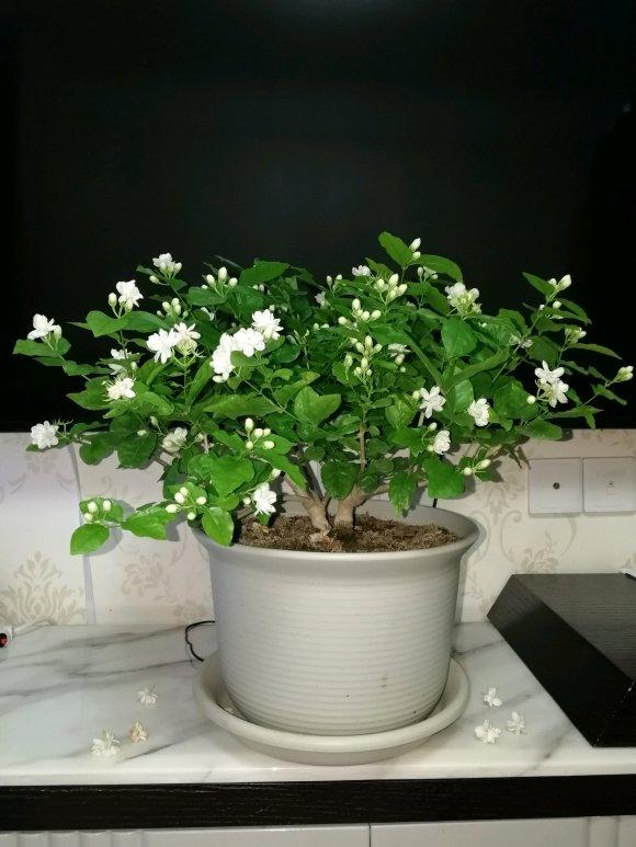 茉莉花大家都熟悉,是夏季开花旺盛爆棚的一种花卉,夏天越热,光照越充足,开花越多,开完花之后及时修剪打理,可以让花一茬接一茬的开。如果修剪得当,在夏天每月都能开一茬花,花香扑鼻,花色洁白,不仅美观清香,还是制作花茶的原料,这种香气是对人身体特别好的,很多老中医家里也养着茉莉花呢,这个可是夏天不可多得的盆栽花卉。