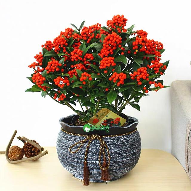 红玉珠也是一种比较漂亮的带有的观果植物。它的叶片油绿,有光泽,红珠子拥簇在顶端,就像一颗颗鲜红的玛瑙一样,非常稠密。它的价格也是非常昂贵的,动辄几百块钱一盆,而且它的株型并不大,整个株型就像手捧花一般。把花剪下来插在花盆中,非常精致漂亮可爱的花卉,它是一种外国进口的高档花卉,来自于荷兰,红色的珠子挂在上面,寓意着鸿运当头,金玉满堂。