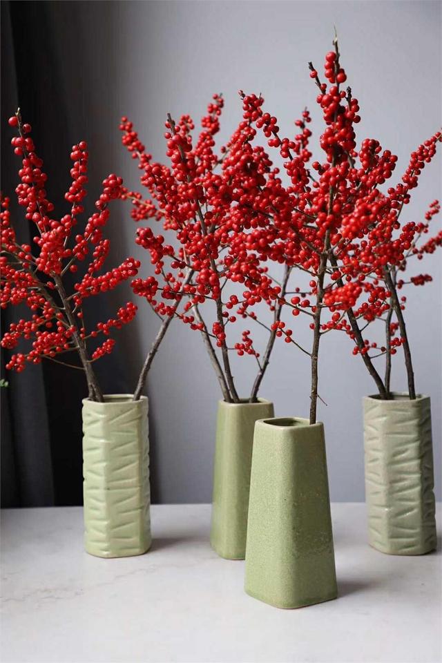 北美冬青是近几年来比较流行的观果植物,现在都是插在花瓶里的鲜切枝,一个枝上能挂几十个红似玛瑙的红果子。插在花瓶里,顿时显得高档又大气,而且一个枝条就自然成型,经常作为高档的鲜切花枝,用来装点节日的气氛。在欧洲一些国家,圣诞节时经常用来当做室内的装饰,近几年来才流行到我国,