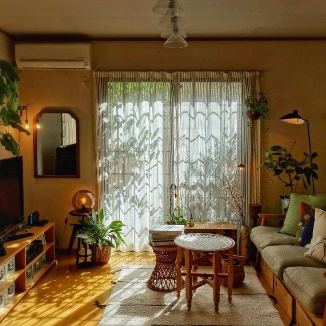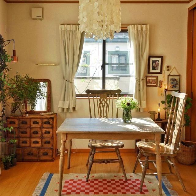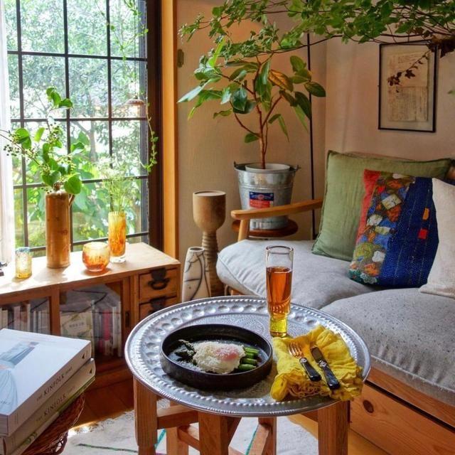 窗外的绿色植物散发着大自然的气息,晴天时,光照透过玻璃进入室内,形成斑驳的光影,这些光影让室内看起来更温暖也更有格调。从阿姨的装修风格和家装布局中就能看得出阿姨是一个很热爱生活的人。