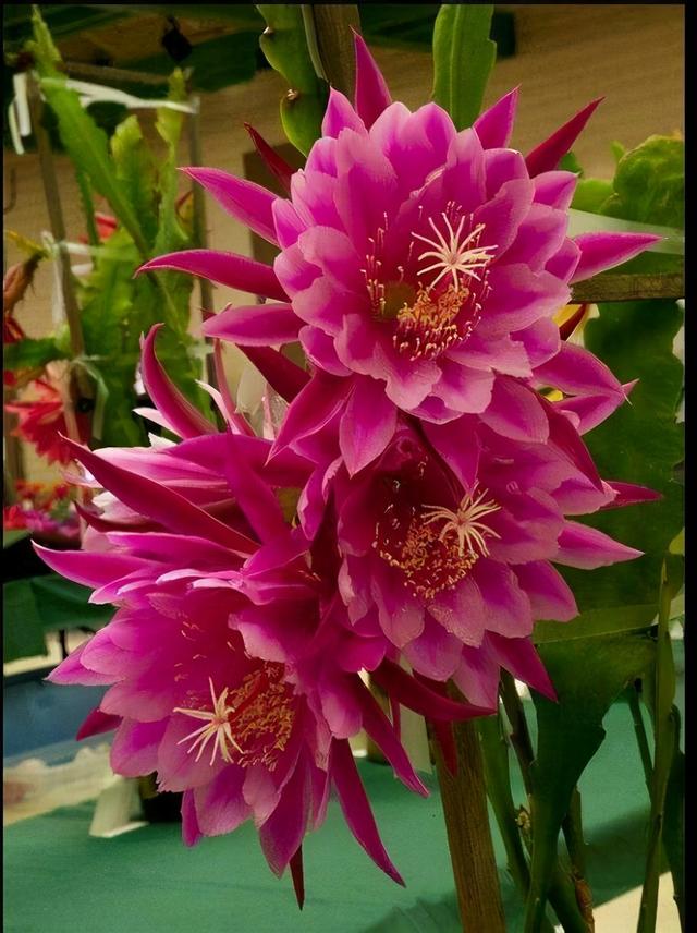 令箭荷花是仙人掌科的植物,因为它开花又多又大,就像一朵朵的大荷花,深受人们的喜爱。令箭荷花的花期一般在春末夏初,令箭荷花在冬天里尽量放在冷凉的地方养护,如果温度太高了,
