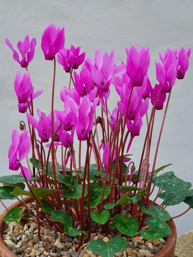 仙客来是过年时非常漂亮的年宵花卉,也是开花小机器,它的花朵娇嫩,繁花密集,株型紧凑,温暖喜庆,虽然仙客来的价格不贵,也就二三十块钱一盆,它的花开量比较多,每天要开花几十朵,一直能开大半年,是妥妥的爆盆王,