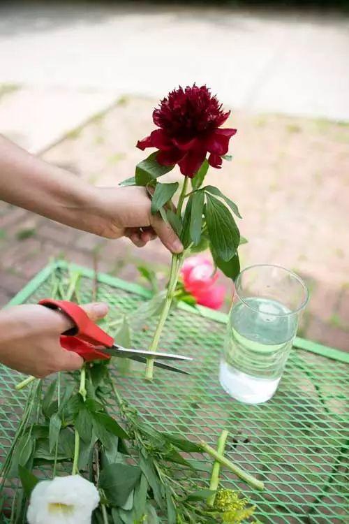 用剪刀按斜角剪掉1-2英寸花茎,每隔两三天剪掉一点。