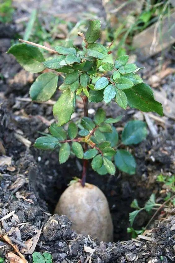 再把土豆放置到有湿润的室外土壤或者容量适宜的花盆里,等插条植物长出新芽后适量浇水,任其生长就行啦!