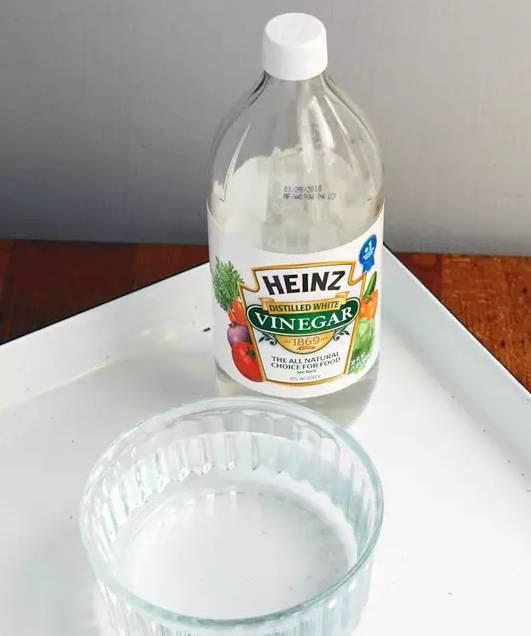 白醋和水以1:500的比例稀释后放在小喷雾瓶里,等到早晨时喷在叶片上,每隔2天喷洒一次即可。