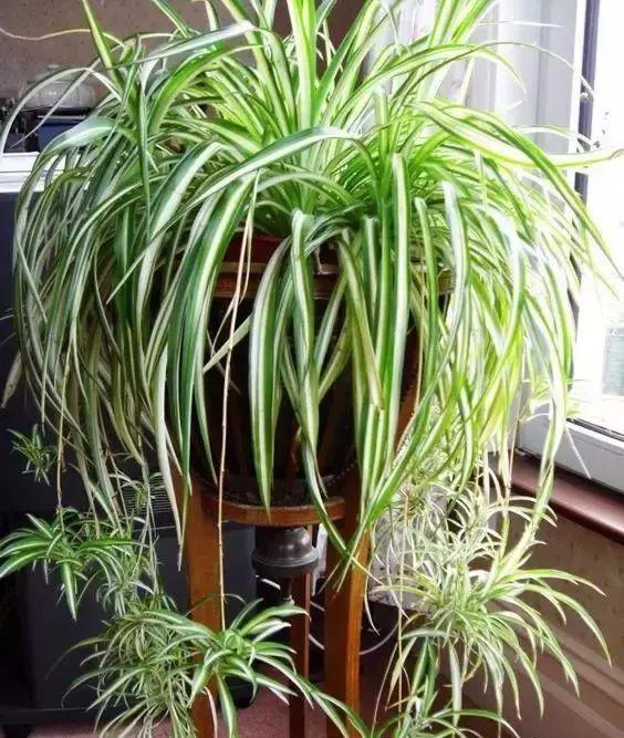 吊兰还能吸收香烟烟雾中的尼古丁等有害气体,因此被称为室内空气的绿色净化器。