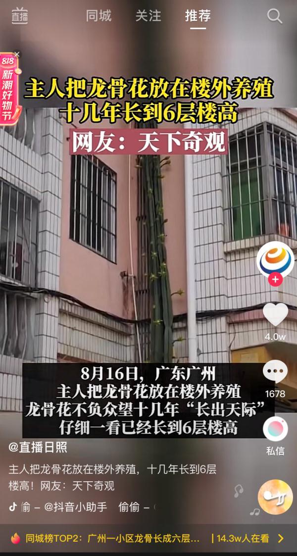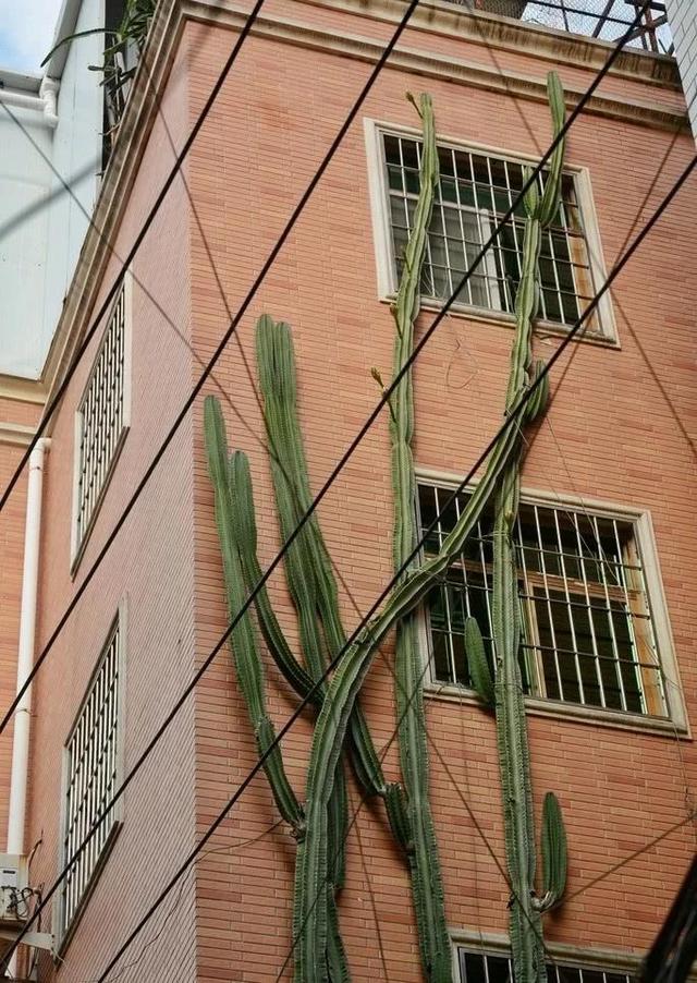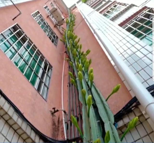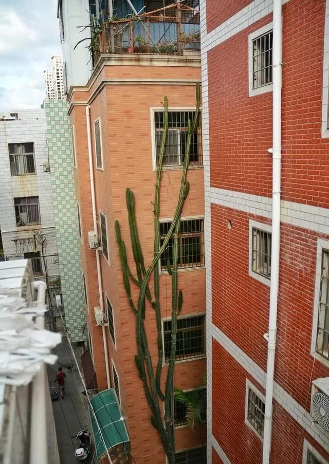 从图片上,我们也可以看到这棵量天尺已经长到了六层楼的高度,它顶端的枝条都几乎要到这栋楼的顶层了,真是太震撼了。量天尺这种植物也是比较常见的了,我们平时在花市上也会见到它的身影,但像这样高大的量天尺,不少人还是第一次见到,真是巨震撼,所以这棵量天尺一下子就在网上火爆了起来,不少人都慕名而来,到此处观看,拍照,打卡。
