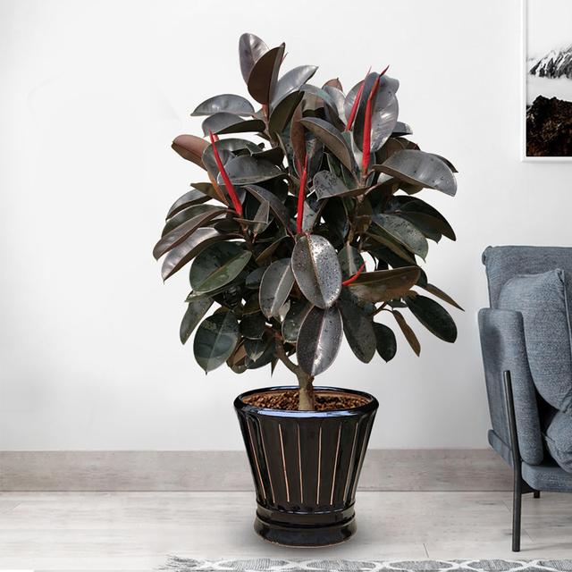 橡皮树是一款观叶植物,株型看起来很大气也很有生机。橡皮树的净化能力很强,它的叶片肥大,吸附灰尘和空气的有害气体,是净化空气的小能手,它喜光又耐阴,放在半阴的地方,长势非常棒,经常用湿布擦拭一下叶片,就可以让它的植株油光锃亮,净化空气一级棒。