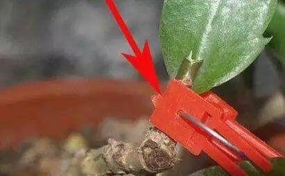 3、将接穗插入叶仙的切口内,然后固定就可以了(我们可以用夹子或者用嫁接胶带都可以。)