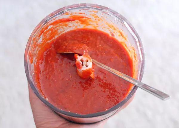 3.制作酱料:加入韩式辣酱(超市有卖)、蒜、糖拌匀。