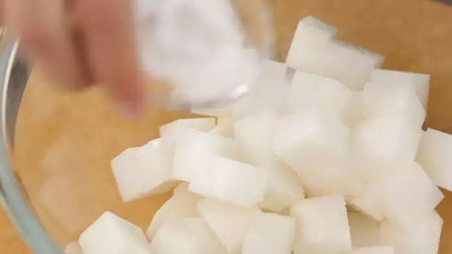 2.加盐腌制30分钟,再倒出水分。