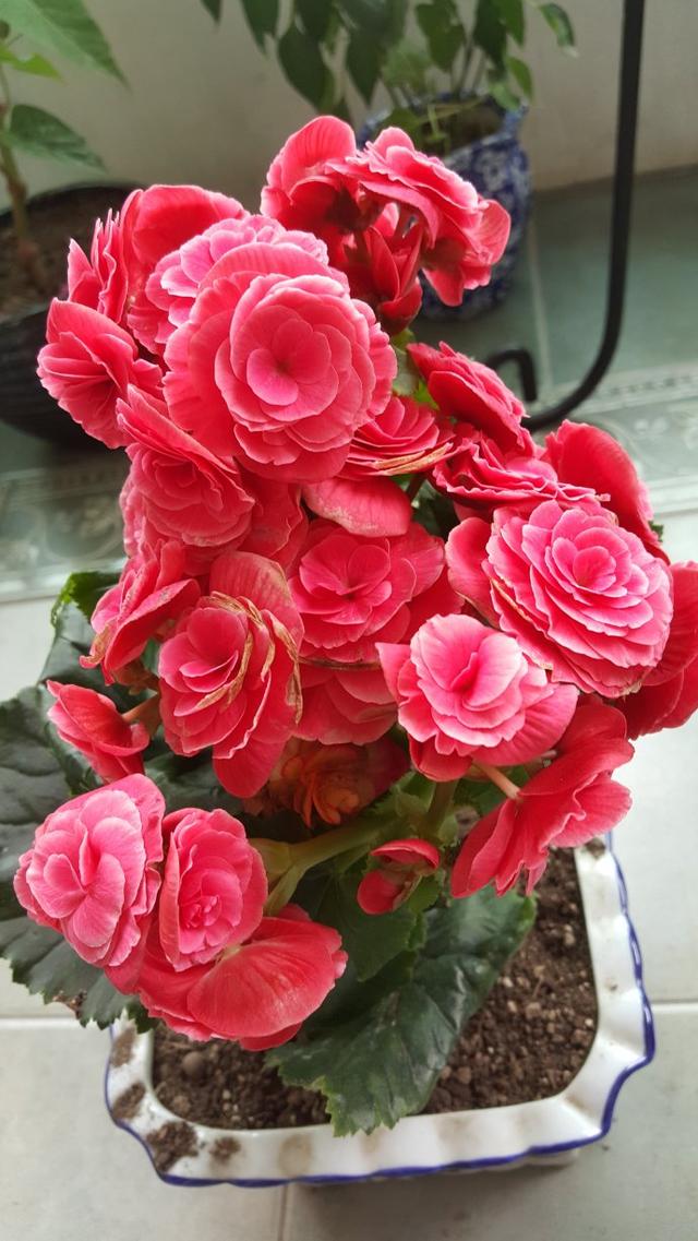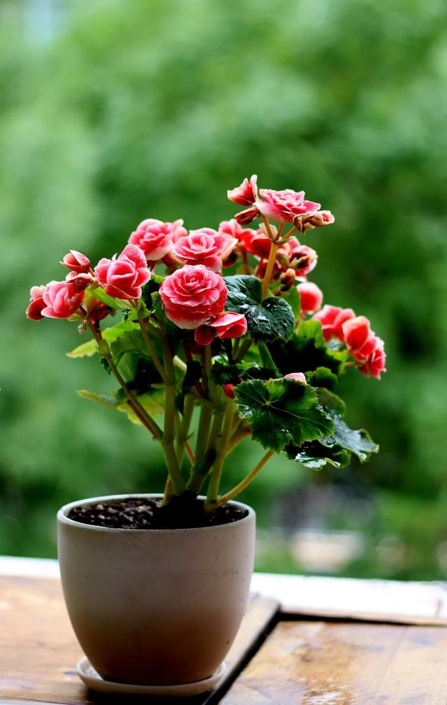 丽格海棠平时放在散射光或者半阴的地方,就可以养的花开不败。盆土干透了浇水,适当地给周围喷雾保湿,不要溅到叶片上,就可以让叶片保持油绿,不干尖不黄叶。一年能开200多天的花卉,实在是花中的战斗机。