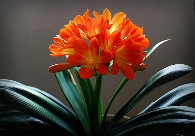 君子兰的叶片比较肥厚,也是特别怕暴晒的植物。平时放在半阴的地方或者散射光充足的地方,就可以养的叶片油绿,花开一两个月的时间。君子兰开花亭亭玉立,叶片油绿,被称作富贵之花,比较适合在室内养护。