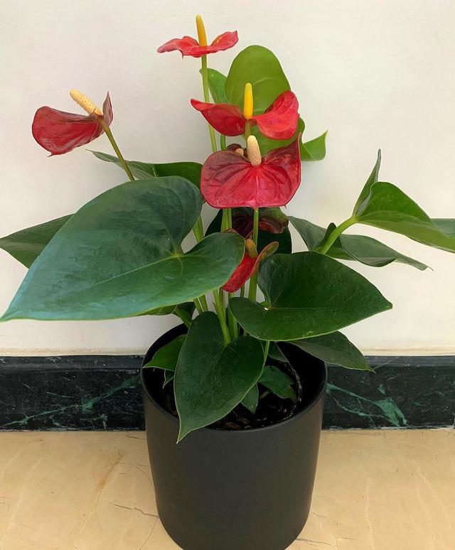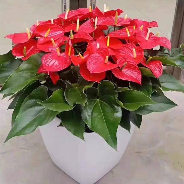 红掌它喜欢散射光充足的环境,比较适合放在阳台半阴的地方养护,稍微给点光照就可以一年四季开花不断。红掌叶片油绿,带有革质,而且花朵漂亮的就如假花一般。红红火火,花红叶绿特别符合中国的审美观,一直被当做年宵花。