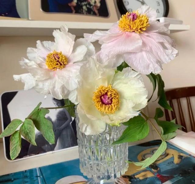 牡丹开花好快!昨天下午还是花苞,晚上就开得很热闹。插花花期好短 ,一个星期不到就凋零了。