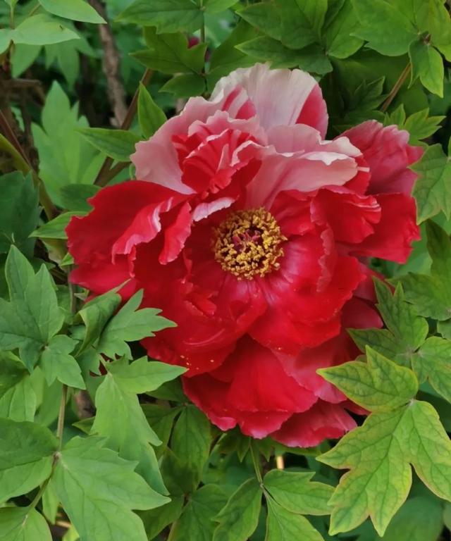 我第一次见到牡丹的时候特别失望,就觉着花这么庞大,但枝干这么细弱,有种头重脚轻,甚至有枝干承受不住花朵的担心。