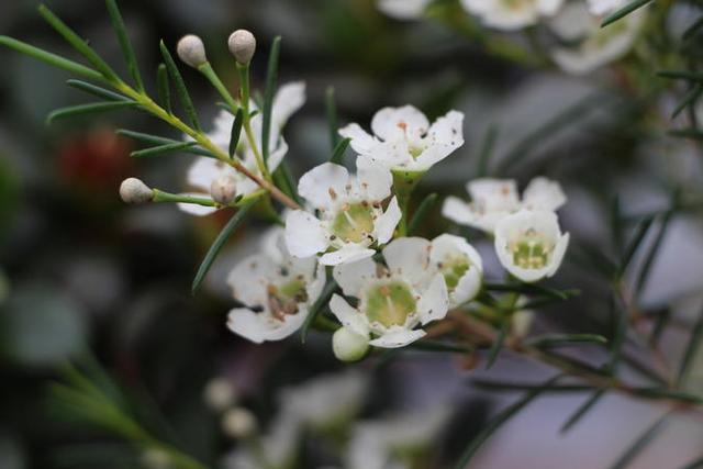 澳州腊梅的花朵,看上去颇为小巧娟雅,形似梅花却更精致,有着淡淡的清香,少了份淡泊,多了些情调,同时兼具东方的婉约秀丽和西方的粗犷恣意。