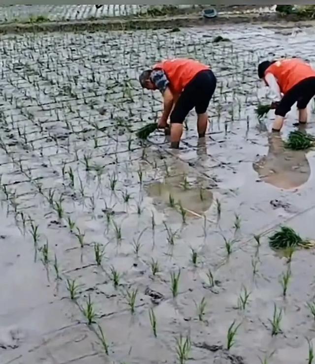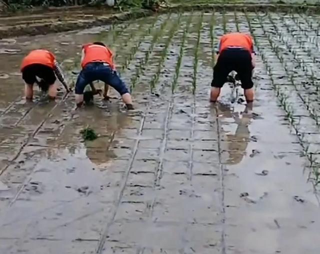 田地里的水稻,被打格子的大师精确地种植,每个格子都有着精确的间距。这样高标准的农田,亩产至少得一万斤,不然对不起这个打格子的大师了!