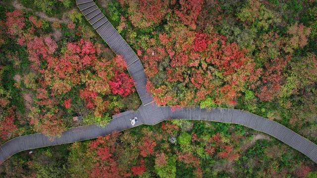 在步道旁、在山顶上,大大小小的杜鹃花如同一个个铃铛簇拥在一起,于苍翠中点缀嫣红,宛如绚丽的云霞,为千峰万壑增添了动人的美感。