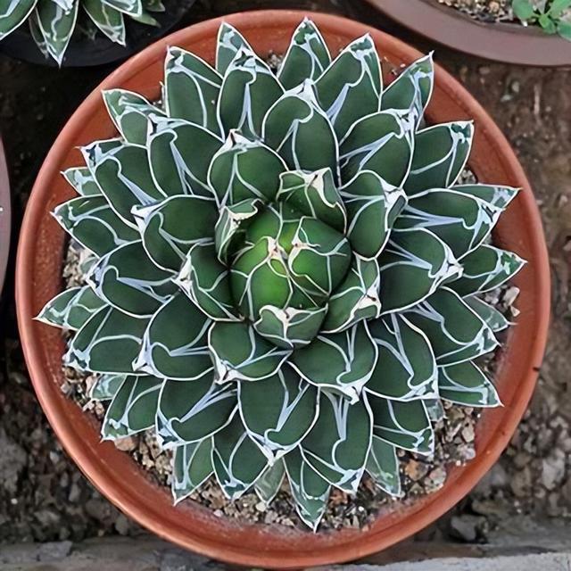 龙舌兰,带有龙字,这种植物名字听上去就觉得十分的威风霸气,它的品种繁多,叶片坚硬,在绿化带里经常见到肆意生长的大型龙舌兰,生命力又十分的强劲,而家庭盆栽的龙舌兰,是比较微型的品种,比如世之雪,龙舌兰的植株看上去紧致硬挺,叶片肥厚,远看的话会觉得它有点像虎皮兰。