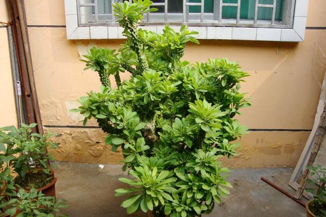 平时放在光照充足的地方晒晒太阳,只要温度能保持到15度以上,盆土干透了浇水就不妨碍它生长了。可以修剪枝条,让它分生出很多侧分枝。这样它长到两三米高,才不会出现头重脚轻,东倒西歪倒伏的情况。