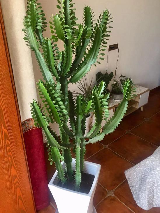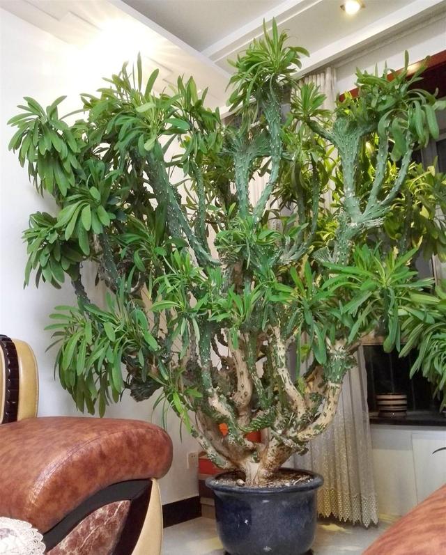 龙骨是一种大戟科的植物。龙骨,它外表长得一点都不美观,浑身带刺,枝干层层叠叠。但是这种植物能养到两三米高,能顶到屋顶,有着镇宅旺运、保家护平安的美好寓意,并不妨碍人们把它养在家里。这种瘦骨嶙峋而且不爱开花的植物,养护起来也是非常简单的。