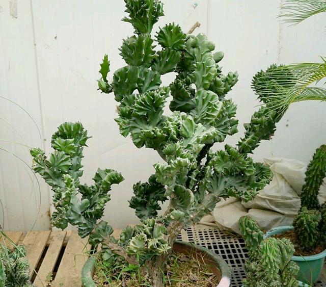麒麟掌也是一种看起来非常奇特的植物。它的株型非常的奇怪,一点都不匀称,有点像古代的神兽“四不像”,也就是麒麟。如果养的植株很大,它的株形更加霸气,既镇宅又奇特就像天降神兽一般。因此在很多的厂房以及阳台上,很多人喜欢养这种造型不匀称、不对称、形状各异的麒麟掌。