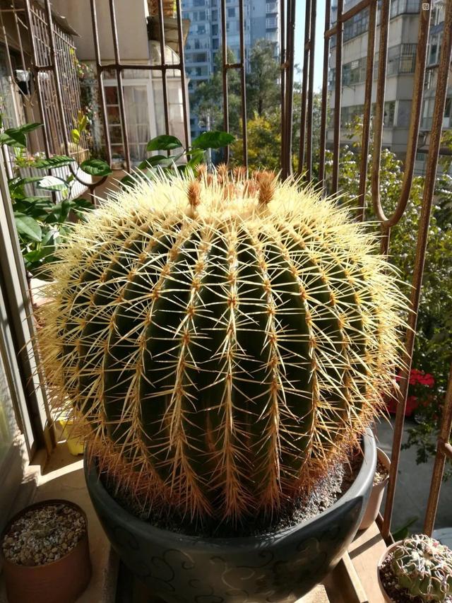 金虎仙人球属于观刺型的仙人球。它的刺又长又坚固,整个球体圆滚滚的,很多人不喜欢在家里养带刺的植物,觉得它是非常不安全的,很容易被触碰到。其实金虎仙人球在一些做生意的人,家门口左右对称,很喜欢摆放上两棵金虎仙人球。可以长到几十年长到直径一米多。