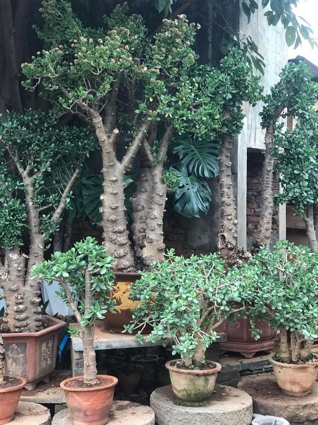 在有些农村,把玉树叫做发财树,只要养到玉树开花。寓意着家里的好运就要到了,有着金玉满堂,富贵成祥的寓意,所以很多人把玉树养成老桩。玉树养护起来非常简单,把它养活容易,但是把它养成威武有形的老树桩,却是不容易的。因为它需要平时不断地修剪打理,让它长成一个树干的形状,上面有一个非常大的冠幅。