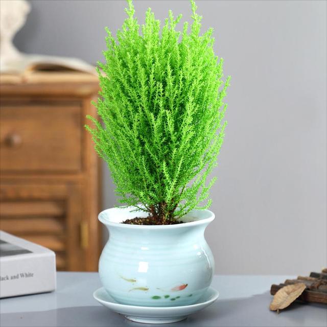 小香松是近几年来比较流行的网红绿植。小香松的叶片是淡绿色的,在光照的照耀下挺拔有力,叶片呈现金黄色。它刚培育出来时,价格是比较高的,动辄上百元一颗。随着培植水平的不断提高。价格也趋于回落。